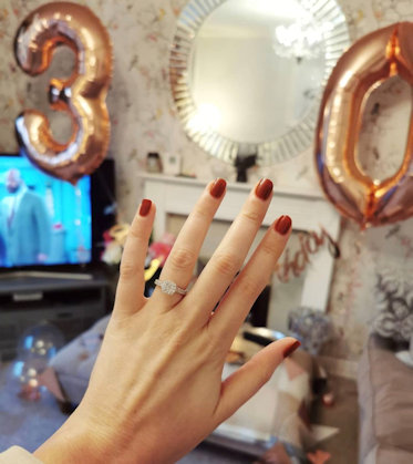 “My boyfriend who I met 12 years ago proposed on my 30th birthday in November ❤️ safe to say I thought the day would never come!! He’d been planning it since the summer and we were meant to be in Jamaica with my family, so it would probably have been a beach sort of proposal.. In the end we spent my 30th in lockdown and I got the shock of my life! Definitely ugly cried for a good 15 minutes and then celebrated with lots of champagne and spent the day in a hot tub he’d hired for the occasion ???? such a perfect day! Currently searching for our venue for a summer 2022 wedding ❤️“⠀⠀⠀⠀⠀⠀⠀⠀⠀