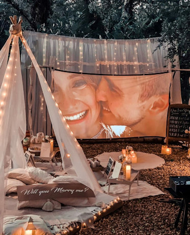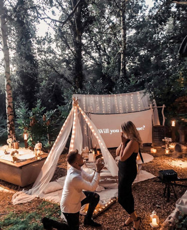 What a beautiful proposal! This was such a special moment that Millie and James were able to share together, in the beauty of the outdoors with the most incredible setup. They then spent the evening under the stars watching a video of all their memories together. It doesn’t get much more magical than that!